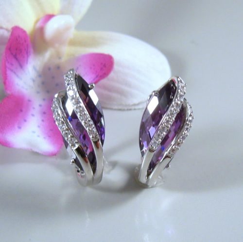 Ohrringe mit Zirkonia und synthetische Amethysten aus 925 Silber rhodiniert